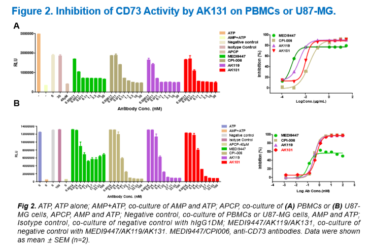 图2. AK131 抑制 PBMC 或 U87-MG 上的 CD73 活性