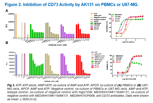 通过基于细胞的酶测定来确定CD73酶活性的抑制,AK131显示出对CD73活性的有效抑制并刺激了细胞对CD73的内吞作用。