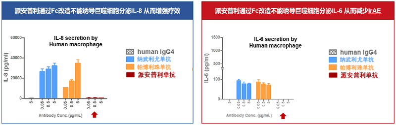 图7:派安普利单抗对比其他免疫球蛋白和PD-1抗体,IL-8和IL-6水平明显降低