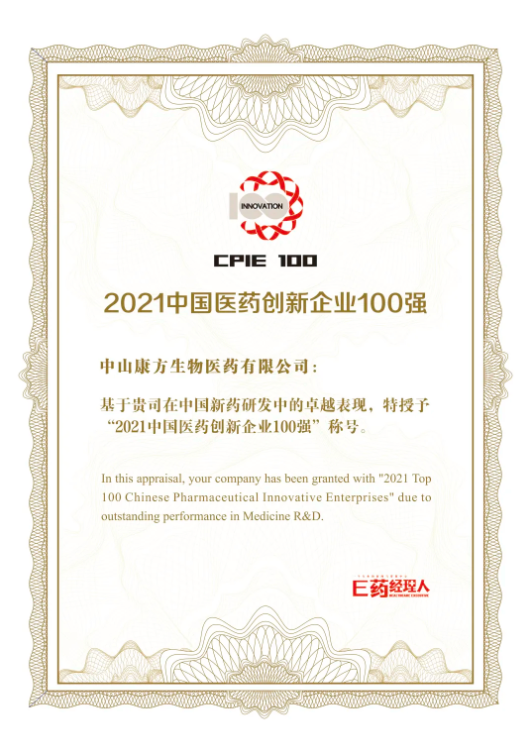 凭借强大的生物药物自主创新能力和丰硕的研发成果,体育博彩再次成功入选本届大会发布的“2021中国医药创新企业100强”榜单(第一梯级)。