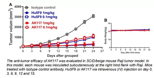 临床前药理学活性研究已表明,AK117可阻断CD47/SIRPα信号通路,并具有良好的血液安全性和抗肿瘤活性,已成为一种非常有前途的实体瘤新疗法。