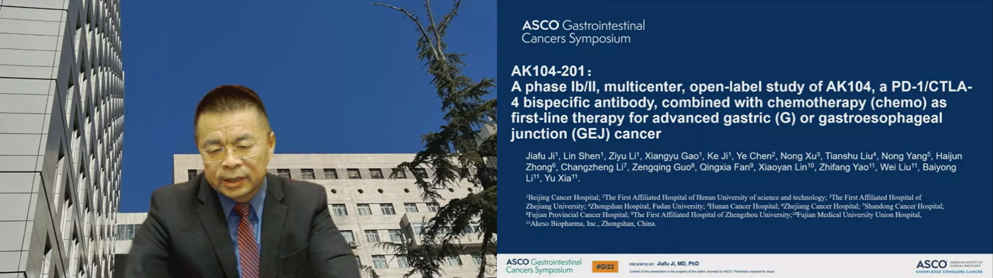 【香港讯,2022年1月24日】在线体育博彩(9926.HK)宣布卡度尼利(PD-1/CTLA-4双特异性抗体,研发代号:AK104)联合化疗一线治疗晚期胃癌或胃食管结合部腺癌(G/GEJ)的Ib/II期临床研究数据(摘要 #308)亮相2022年美国临床肿瘤学会胃肠道肿瘤研讨会(ASCO GI)。北京大学肿瘤医院院长季加孚教授在会议中口头报告了该项研究结果。